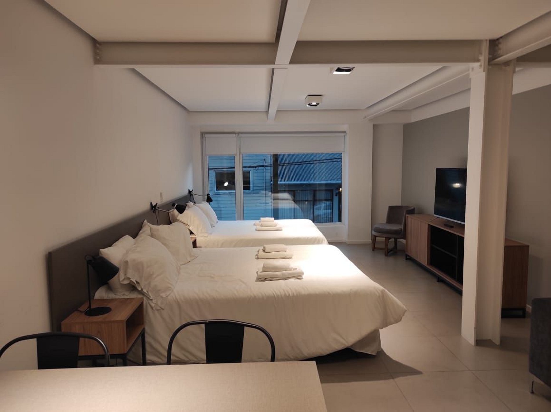 Spacious, modern, and functional studio—perfect for up to four guests. It features a fully equipped kitchen, integrated dining area, double bed and sofa bed, Smart TV, high-speed Wi-Fi, and private bathroom. Its prime location, just steps from San Martín Street, lets you explore Ushuaia on foot with everything close by.