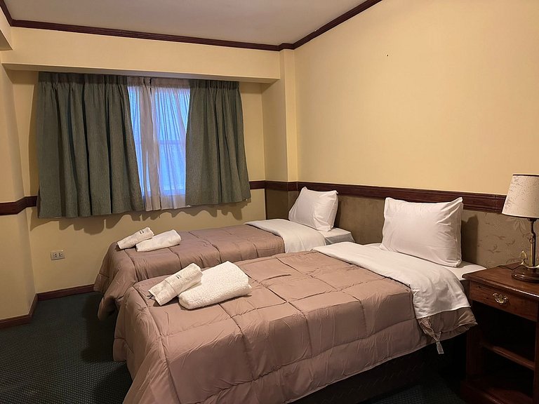 Apartamento bien situado y tranquilo en el centro de la ciudad. Con acceso sencillo a la calle principal donde encontraras todos los restaurantes, agencias de turismo y con supermercado cerca. Apartamento de dos dormitorios y dos baños ideal para familias o grupos de amigos. Cuenta con una pequeña cocina con hornallas para cocinar. Una zona de estar agradable. Acceso por ascensor u escalera. Alguien te estará esperando el día de tu ingreso para darte la llave.