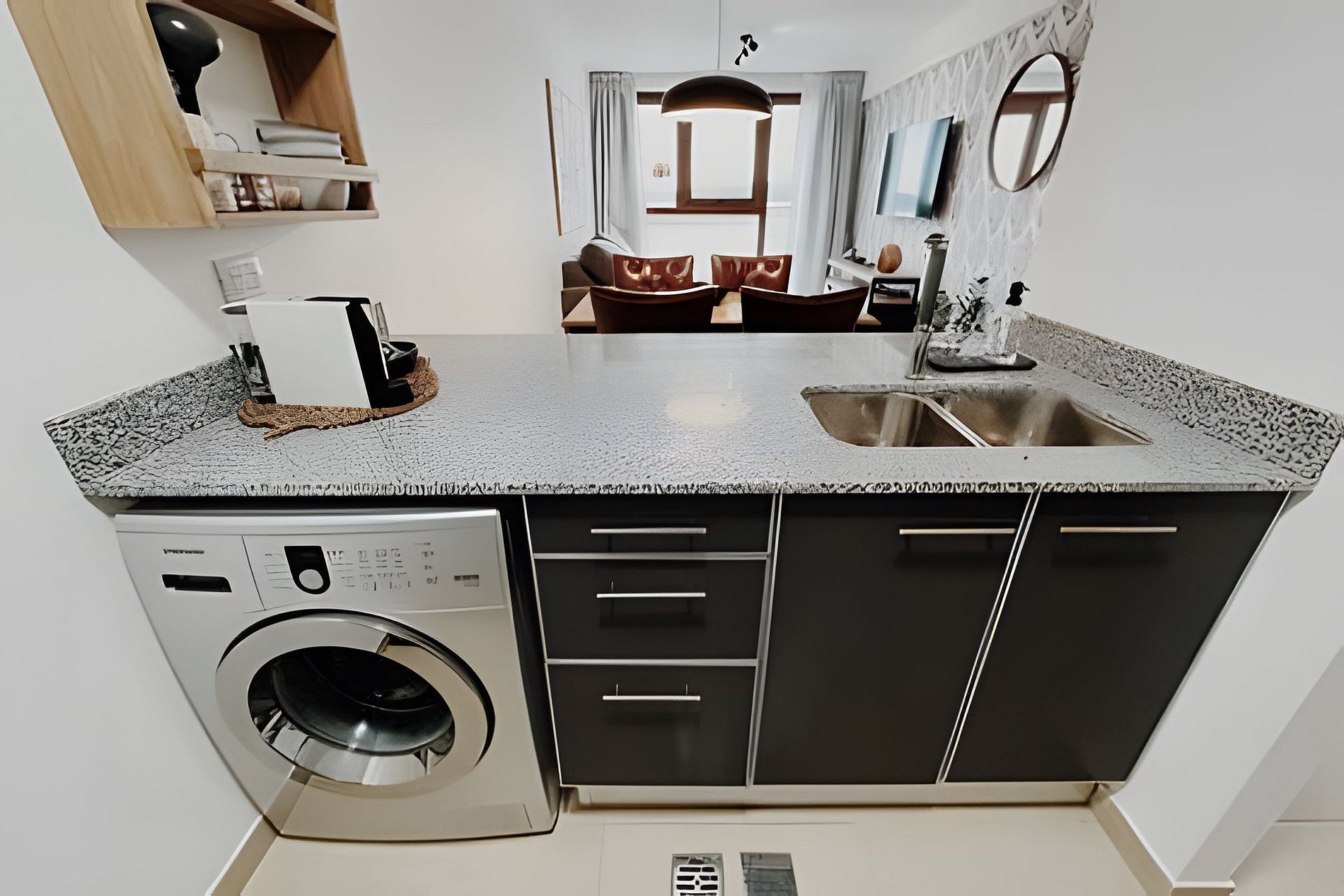 Los huéspedes tienen acceso libre a todas las áreas del apartamento, incluyendo cocina, baño, lavarropas y estacionamiento. El edificio es residencial, por lo que se solicita respetar las normas de convivencia: evitar ruidos molestos, no fumar en espacios comunes y no realizar reuniones. El acceso es independiente y no hay restricciones horarias para entrar o salir.