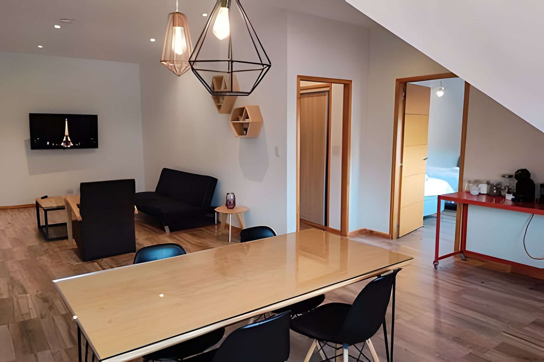 Toluken 3C é um apartamento amplo e iluminado, ideal para famílias ou pequenos grupos. Possui dois quartos, um banheiro completo e um lavabo adicional, cozinha equipada, sala de estar e jantar integradas e varanda com vista urbana. Está totalmente mobiliado, com Smart TV, Wi-Fi de alta velocidade e aquecimento central.